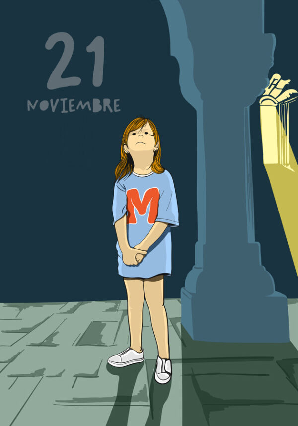 Cuenta una tradición muy antigua que cuando la Virgen María era muy niña, sus padres, San Joaquín y Santa Ana, la llevaron al templo de Jerusalén y se la presentaron a Dios en agradecimiento por su nacimiento y en ofrecimiento para su consagración.